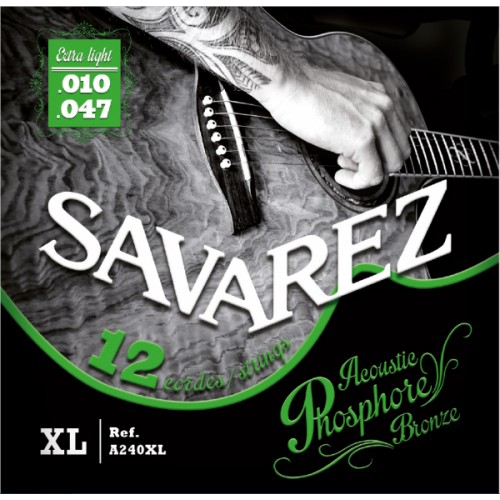A240XL Комплект струн для 12-струнной акустической гитары, фосфорная бронза, Extra Light, 10-47, Savarez