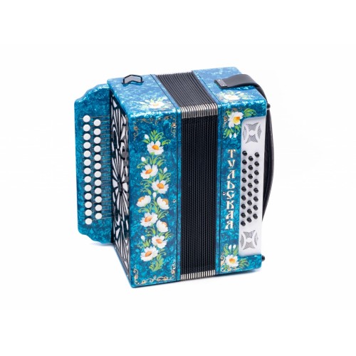 • G-21-BL Гармонь Тульская-301М 25х25-III с двумя ремнями, синяя, Тульская гармонь