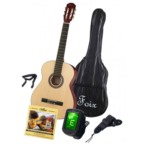 FCG-2039CAP-NA Классическая гитара с чехлом, ремнем, тюнером, цвет натуральный, Foix