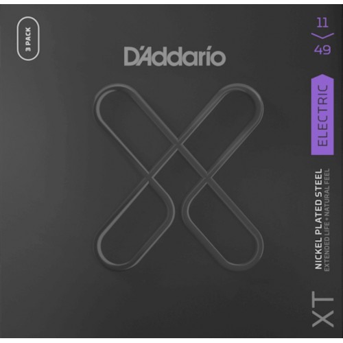 XTE1149-3P XT Струны для электрогитары, никелированные, 11-49, с покрытием, 3 комплекта, D'Addario
