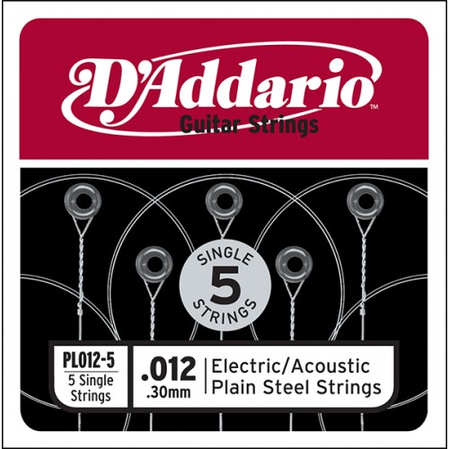 PL012-5 Plain Steel Отдельная стальная струна без обмотки 012, 5шт, D`Addario